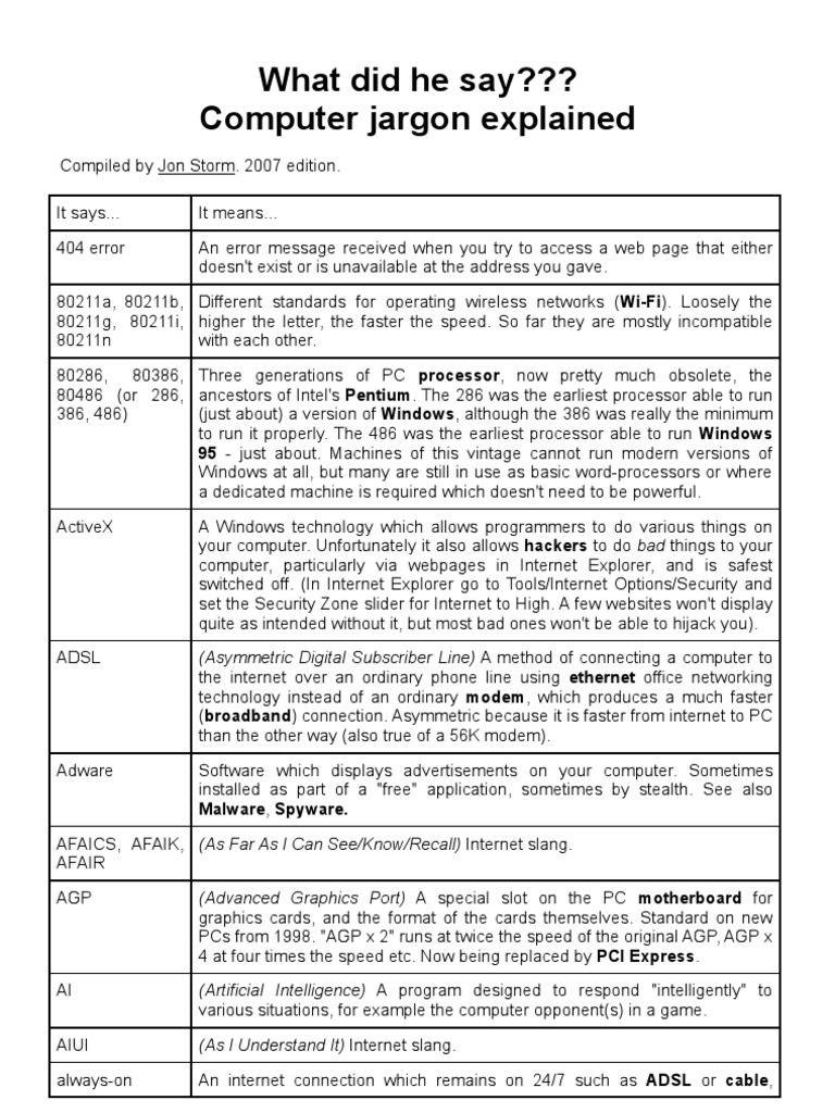 Jargon Computer Jargon Another Name For Computer Jargon over 15,000 free computer terms, dictionary definitions, abbreviations, and computer jargon with thousands of pictures and. computer jargon means words to do with computers and surrounding topics. Knowing what these words mean can help people. 200 most useful computer terms. Read the web version at pctips.com. to help you out, i’ve compiled this monster list of. Another Name For Computer Jargon.